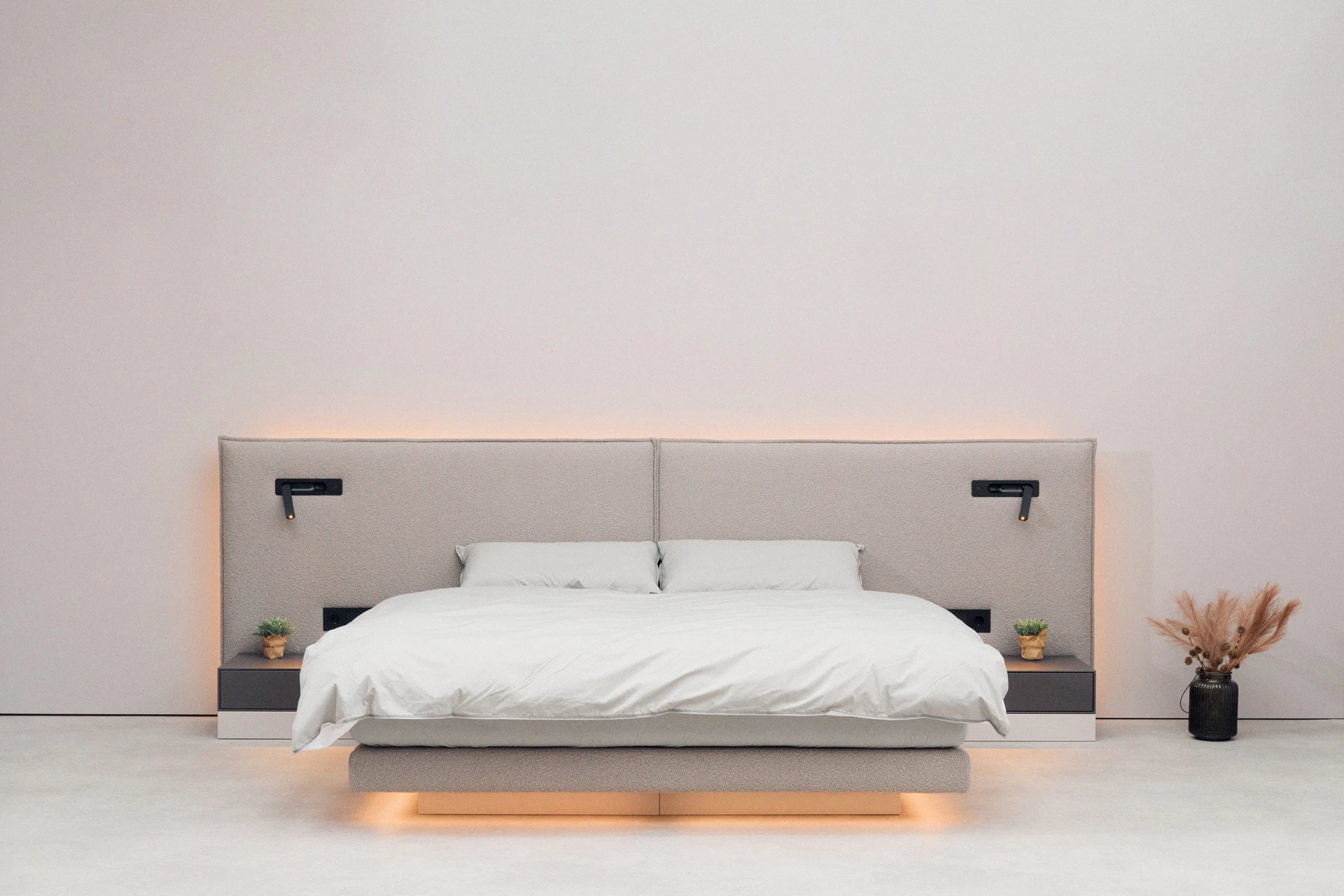 - Indirekte Unterbett-Beleuchtung mit neutralweißen LEDs